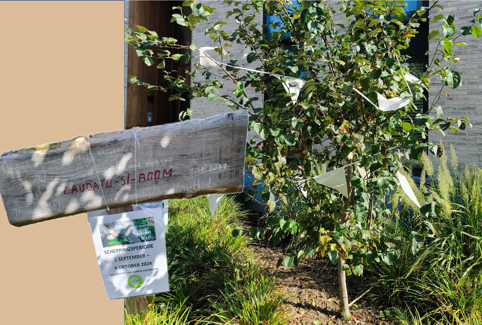 x, verantwoordelijke diaconie en solidariteit in de PE H.Thomas Herentals stuurde een tekst en een foto bij de scheppingsviering van 8 september 2024 in de in St. Pieter en Pauwelkerk te Herenthout: "Wij, christenen, vormen samen met alle andere levende wezens één grote familie “Alles wat ademt en leeft zingt de lof voor God”. En in dat koor van de schepping kan geen enkele stem gemist worden. Wij hebben het recht niet om stemmen tot zwijgen te brengen. Als kerkgemeenschap is het onze taak hieraan mee te werken, ook hier in onze parochie. Twee jaar geleden plantten we, samen met de jeugd, enthousiast een nieuwe boom naast onze kerk in het kader van LAUDATO SI. Heb je hem recent nog bewonderd? Hij draagt reeds vruchten, kleine peren die voor gans de gemeenschap zijn. Laten we elkaar meenemen in hoopvolle acties die ons leiden naar een gezonde, leefbare aarde met overvloed aan leven voor alle mensen, voor alles wat ademt en leeft. De kerkgangers kregen ook enkele zonnebloempitten mee die ze in het voorjaar kunnen planten, zodat er prachtige zonnebloemen verschijnen waarvan zowel zijzelf als de bijen en vogels kunnen genieten."