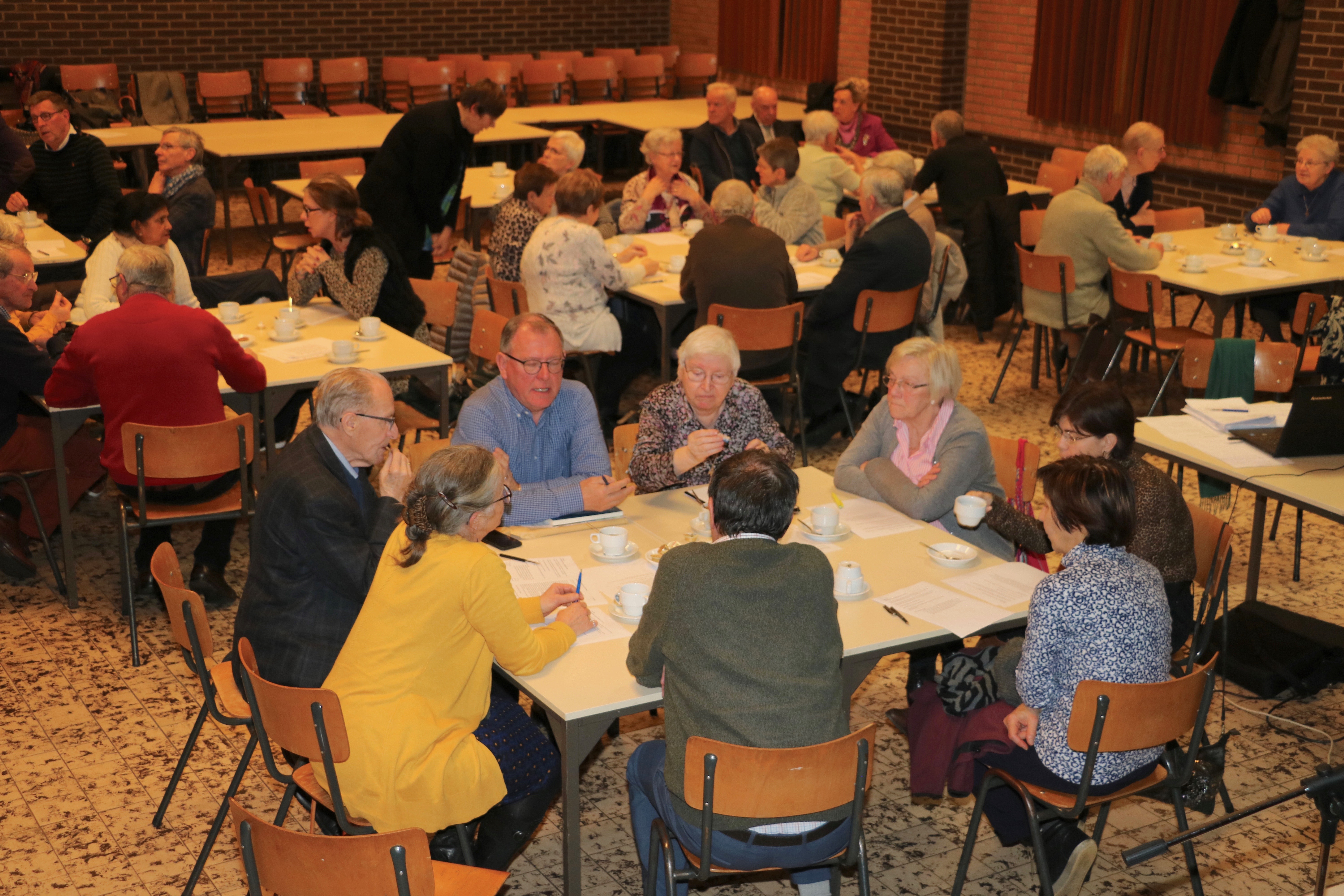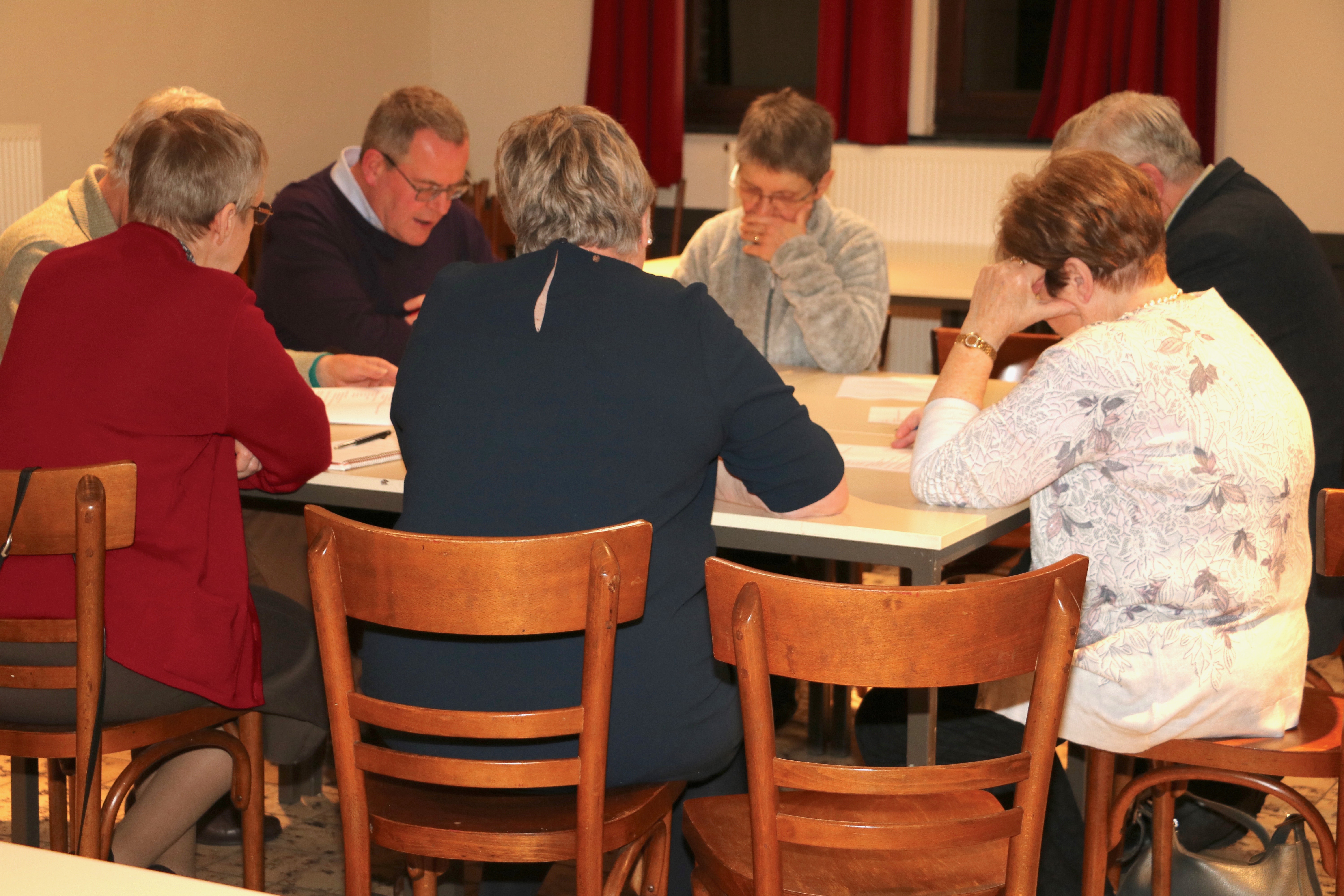 Van de korte bespreking over deze lezing aan de tafel onthouden we het volgende: ‘Iedere mens met zijn beperktheden is een waardevol mens, die met zijn talenten kan meebouwen aan een betere en een geloviger wereld.’Van parochiefederatie naar pastorale eenheid Deken Eric opent het thema van onze bijeenkomst. We zijn al dertig jaar een parochiefederatie. In het begin met enkele parochies, tot we op vandaag zijn uitgegroeid tot de huidige zeven parochies. En in al die tijd hebben priesters, diakens en vrijwilligers nauw samengewerkt om christen te zijn en te blijven. Nu willen we samen met het Bisdom een nieuwe naam aan die samenwerking geven, namelijk: ‘de pastorale eenheid’.