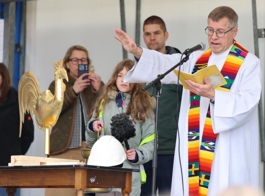 De plechtigheid start met een toespraak door Marc Charlier, schepen bevoegd voor Erfgoed. Aansluitend zegent pastoor Jan Herinckx de bol – waarin brieven van de kinderen van de verschillende scholen werden opgeborgen – evenals het kruis.