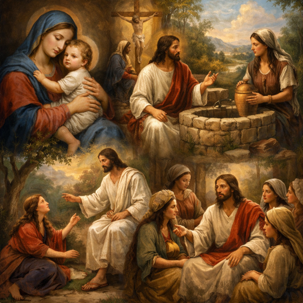 Naar aanleiding van de dag van de vrouw, wil ik stilstaan bij de belangrijke rol van vrouwen in het leven van Jezus, zoals voorgesteld in de evangelies. Jezus leefde in een context waarin vrouwen in het openbare leven een ondergeschikte plaats innamen en juridisch beschouwd werden als het bezit van hun man. Jezus doorbreekt dat denkpatroon. Hij beschouwt vrouwen als volwaardige gesprekspartners en maakt hen tot leerling. Hierbij enkele uit vele voorbeelden.
