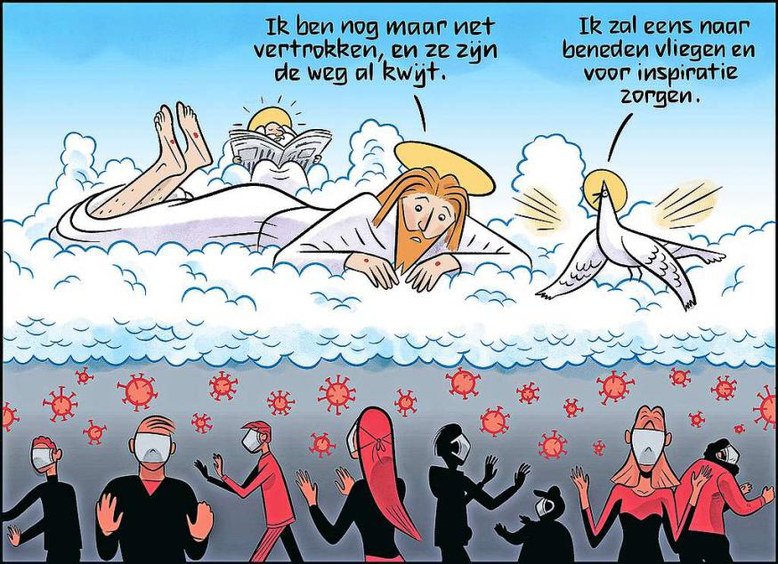 Waar is Christus die zichzelf één verklaard heeft met zijn Kerk? Hij heeft haar gemaakt tot zijn lichaam. Kan het radicaler? Hij heeft zijn leven gegeven voor deze wereld. Kon Hij meer doen? Velen lopen er verweesd bij en horen nu: „Ik ben met u alle dagen.” Dat is de laatste zin van het hele Mattheusevangelie. Loze woorden waarmee je vandaag geen pijn kunt verzachten? Of zijn we vergiftigd met een algemeen verspreid pessimisme? Verlamd op een ogenblik dat we het meest onze positieve krachten zouden moeten aanboren? Je kunt niet zeggen dat we enkel reageren als verwende kinderen die het te goed hadden en nu moeten inbinden. Of zelfs gestraft worden. In deze coronacrisis gaat het niet om luxe. Ze is een wereldwijde uitdaging waarin iedereen plots kopje-onder kan gaan. Is de catastrofe ook een kans? Hemelvaart concentreert die vragen, zeg maar angsten.