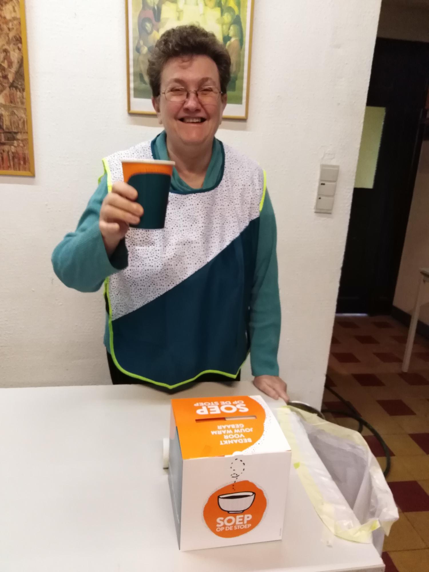 Zondag 1 december, begin van de advent, begin van de vastencampagne van Welzijnszorg. In de kerk van Onze-Lieve-Vrouw Onbevlekt nam Lieve op het einde van de misviering het woord. Ze deed een warme oproep om de feestcampagne van Welzijnszorg te steunen. Dit jaar blaast deze organisatie immers 40 kaarsjes uit. Veertig jaren ‘Samen solidair tegen armoede’. Lieve deed echter meer dan dat. Ze maakte naar goede gewoonte in de adventstijd een ketel lekkere pompoensoep. En daarmee organiseerde ze een ‘Soep op de stoep’-actie na de misviering in de Emmaüsfoyer. Een heel aantal kerkgangers kwamen dus nog een beker soep drinken alvorens weer huiswaarts te keren. De doos voor de vrijwillige bijdragen stond duidelijk zichtbaar op de hoek van de serveertafel. En de actie loonde! We haalden 105 euro op. Met dank, in de eerste plaats aan Lieve voor de organisatie, en aan alle deelnemers vanwege de mensen die welvaren dank zij Welzijnszorg.